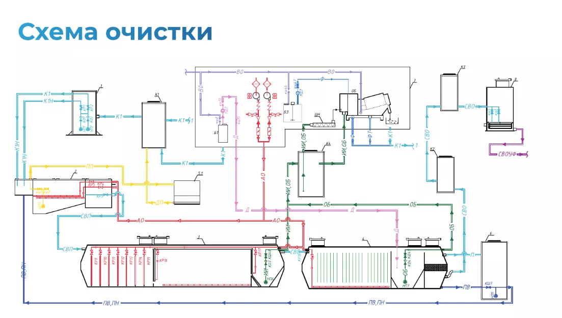 • Сборный коллектор - Очищенные воды направляются в водный объект.
