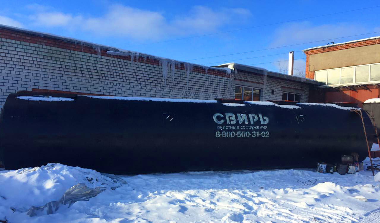Установка «СВИРЬ» представляет собой подземную горизонтальную цилиндрическую емкость, снабженную внешними патрубками подвода сточных вод, отвода очищенных сточных вод, отвода промывных вод и перелива, люками для доступа и обслуживания.